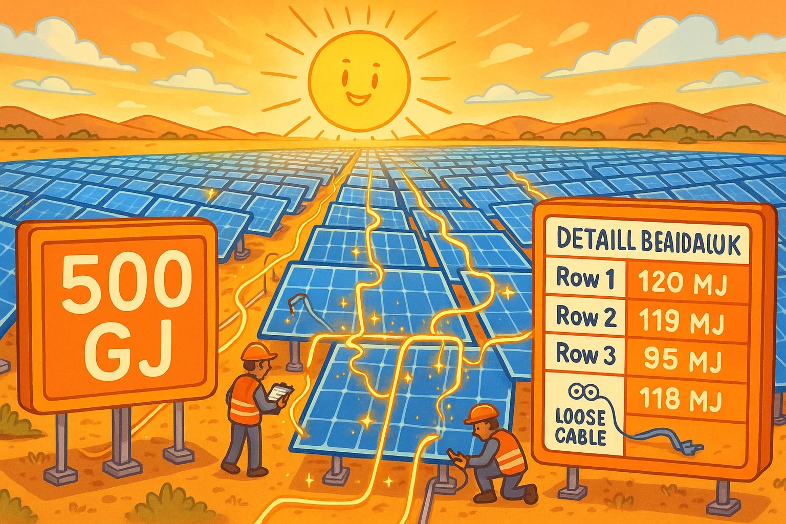 During one particularly windy week, output fluctuated wildly — the GJ totals seemed fine, but the MJ breakdown revealed small but consistent underperformance in a single row of panels. Technicians traced the issue to a loose cable, and repairs brought output back up immediately.