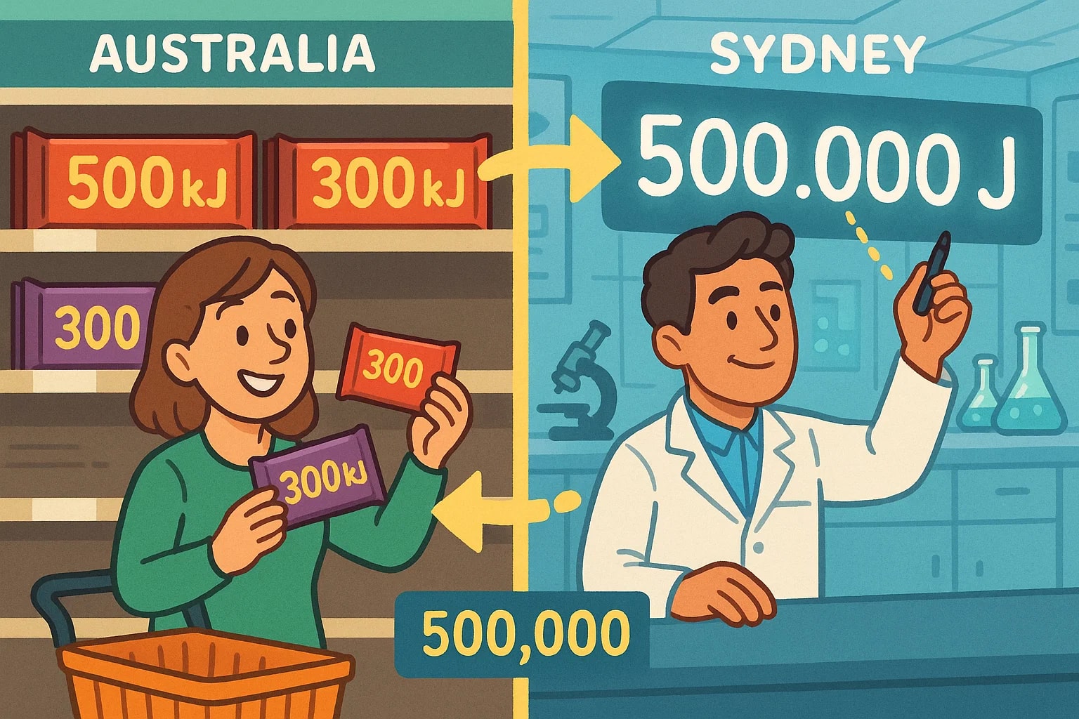 On the grocery shelf, kilojoules keep the numbers easy to read and compare. For instance, a shopper deciding between two snacks can quickly see that one has 300 kJ and the other has 450 kJ — a meaningful difference without having to process large six-digit numbers.
