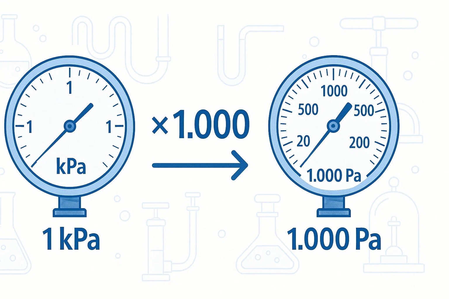 1 kPa × 1,000 = 1,000 Pa -