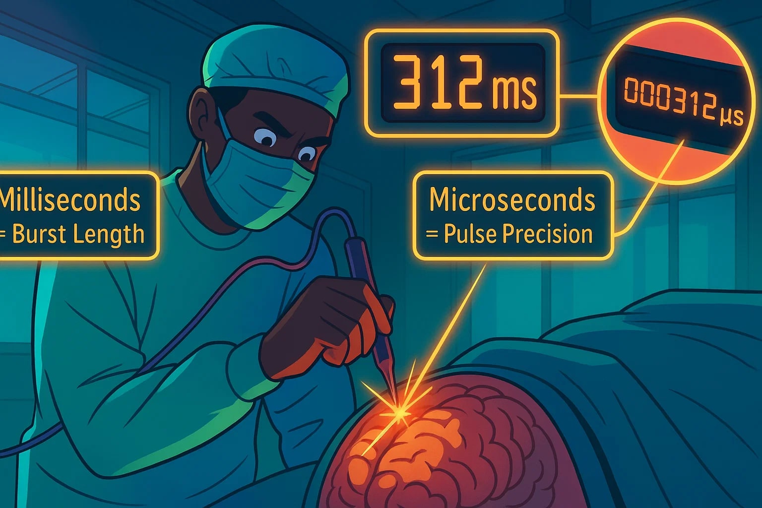 In a cutting-edge neurosurgery procedure, doctors used an advanced laser scalpel guided by a computer system. The device’s firing bursts were just a few milliseconds long, but within each burst, microsecond precision was needed to control heat and avoid damaging surrounding brain tissue.