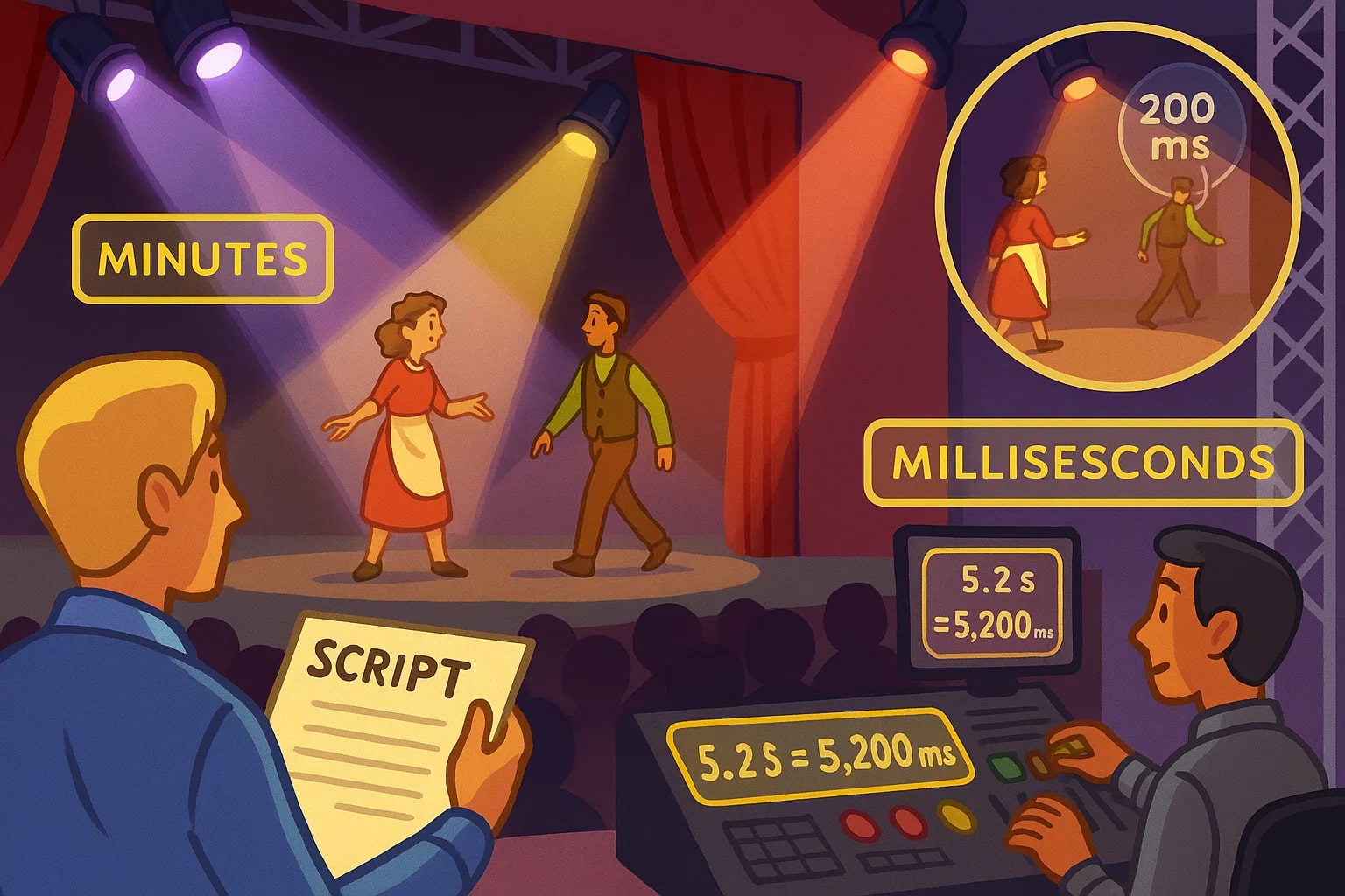 During a Broadway show, a single mistimed lighting change of just 200 milliseconds can break the illusion for the audience. It’s a perfect example of how minutes set the big picture while milliseconds perfect the details.